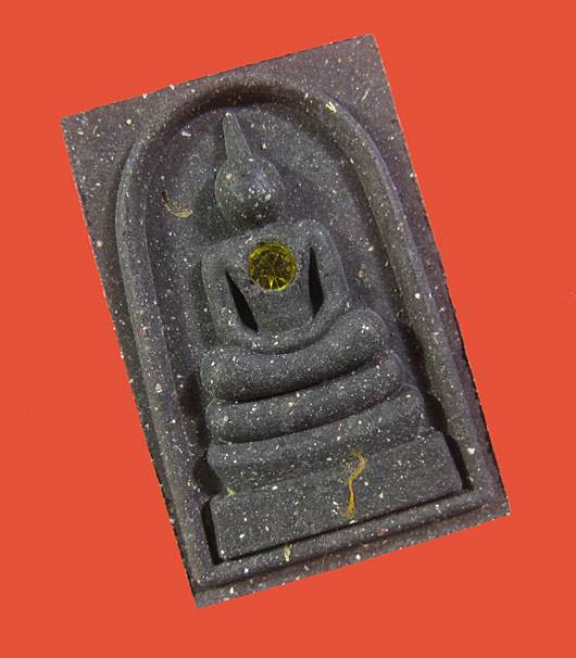 พระสมเด็จ หลังยันต์คาถา ชินบัญชร ( วัดสร้าง ) หลวงปู่ศิลา สิริจันโท ออกวัดโพธิ์ศรีสะอาด รุ่นชินบัญชร เนื้อดำ อกฝังพลอย "" ตอกพิเศษ No 1373