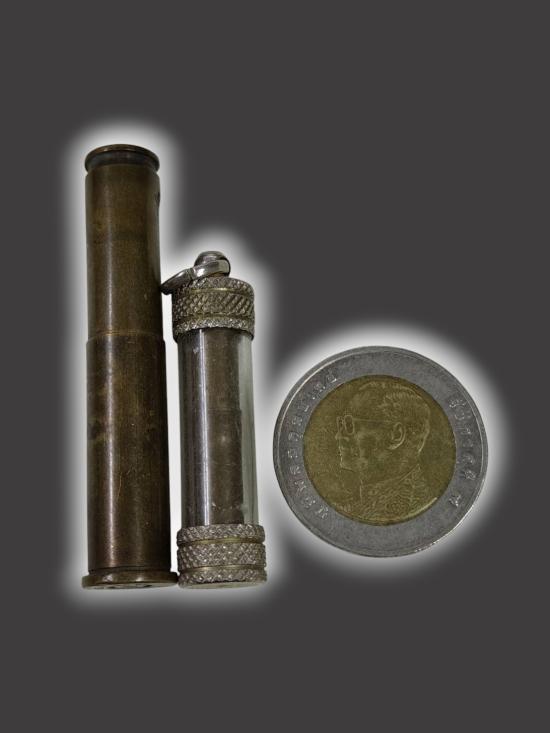 A2862.วัดใจ ตะกรุดปลอกลูกปืน 2 ดอก ตามรูปครับ เคาะเดียวเเดง |