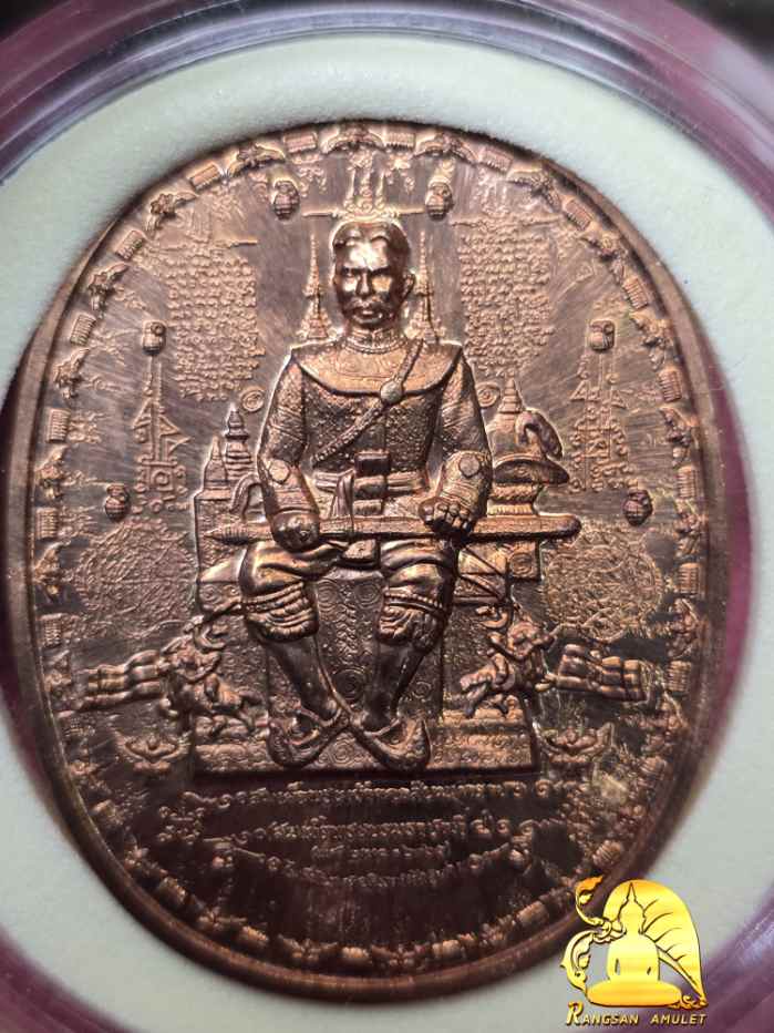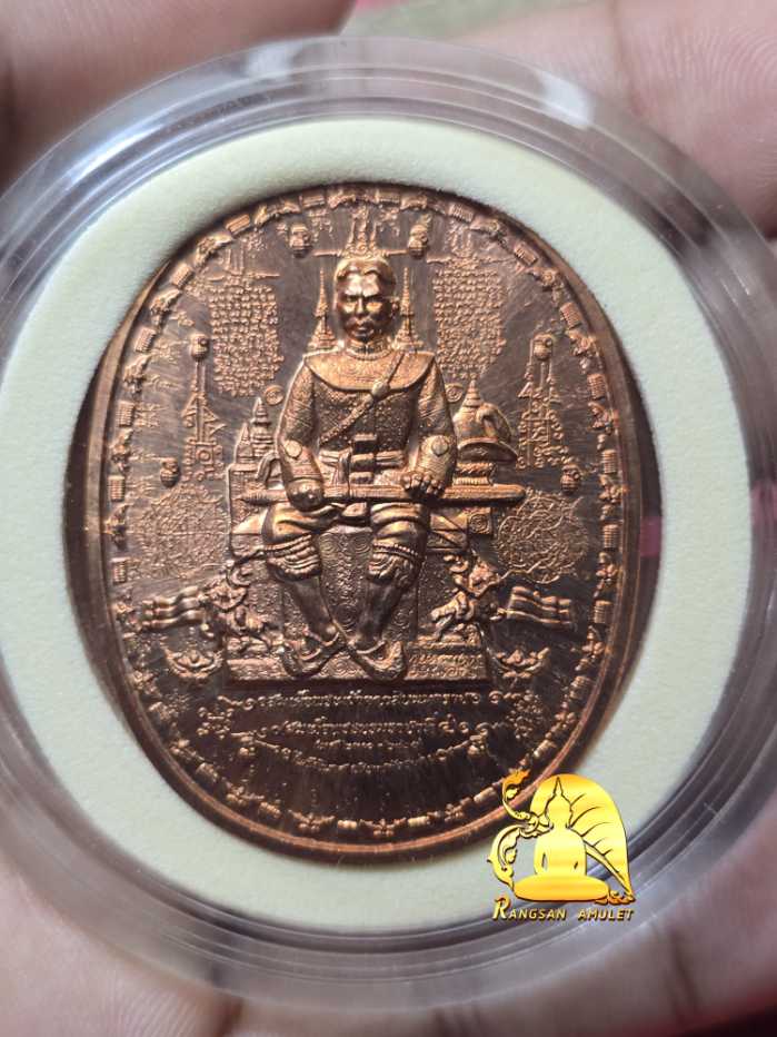 เหรียญระเบิด พระเจ้าตากสินนั่งบัลลังก์ใหญ่ ปี 50 เนื้อทองแดง อาจารย์หม่อมนิรนาม จัดสร้าง |