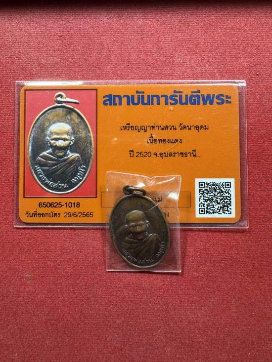 เหรียญญาท่านสวน วัดนาอุดม ปี 2520 พร้อมบัตรรับรอง