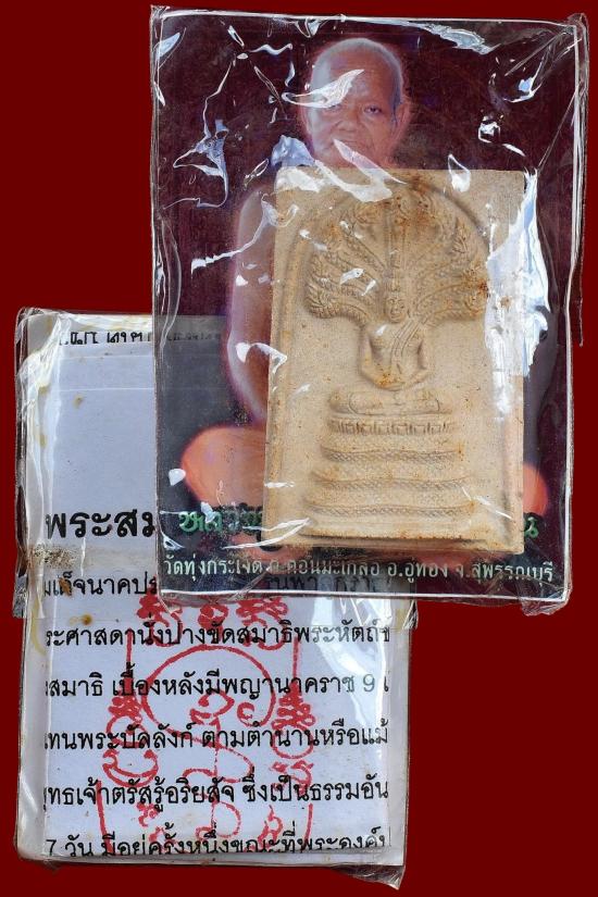 *** เคาะเดียวแดง ทุกรายการ *** พระสมเด็จนาคปรก รุ่นแรก เนื้อผงว่านยา หลังฝังเกศา + ฝังตะกรุดเงิน 1 ดอก หลวงปู่นิเวศน์ วัดทุ่งกระเจ็ด สุพรรณบุรี ปี 2552 มีซองจากวัด สภาพตามรูป (No.1)