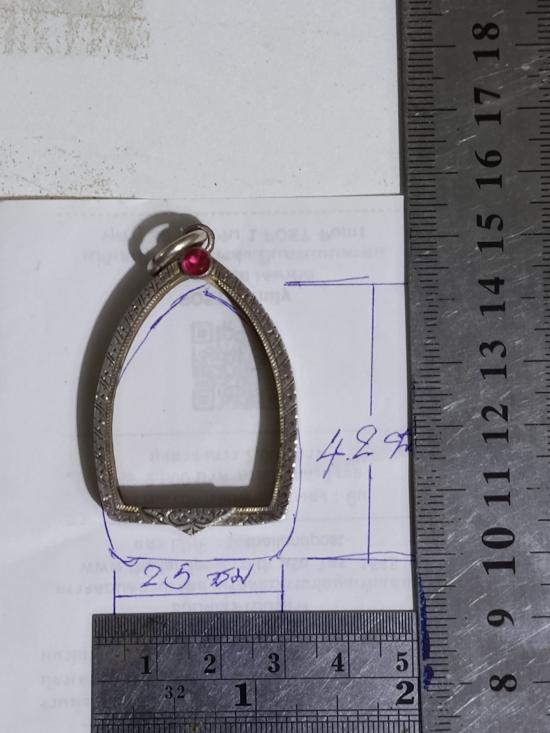 กรอบเงินเก่าแท้ ฝังพลอยแดง งานสั่งทำเก่า ใส่เหรียญเจ้าสัวหลวงปู่บุญและเจ้าสัวทุกรุ่น ขนาด 2.5 ซม.4.2 ซม.หนา 7 มม. หนาหนัก 4.83 กรัม |