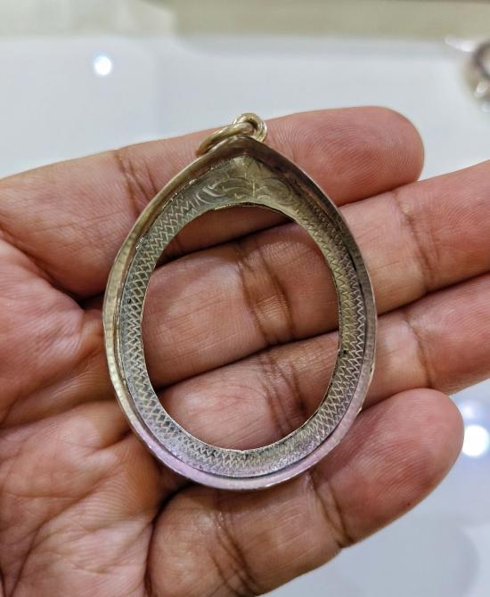 กรอบเงินรูปไข่ มือสอง 95% ขนาดจอ 2.8*3.5 cm งานลงยาร้อนสุโขทัย คุ้มค่าทนทาน |
