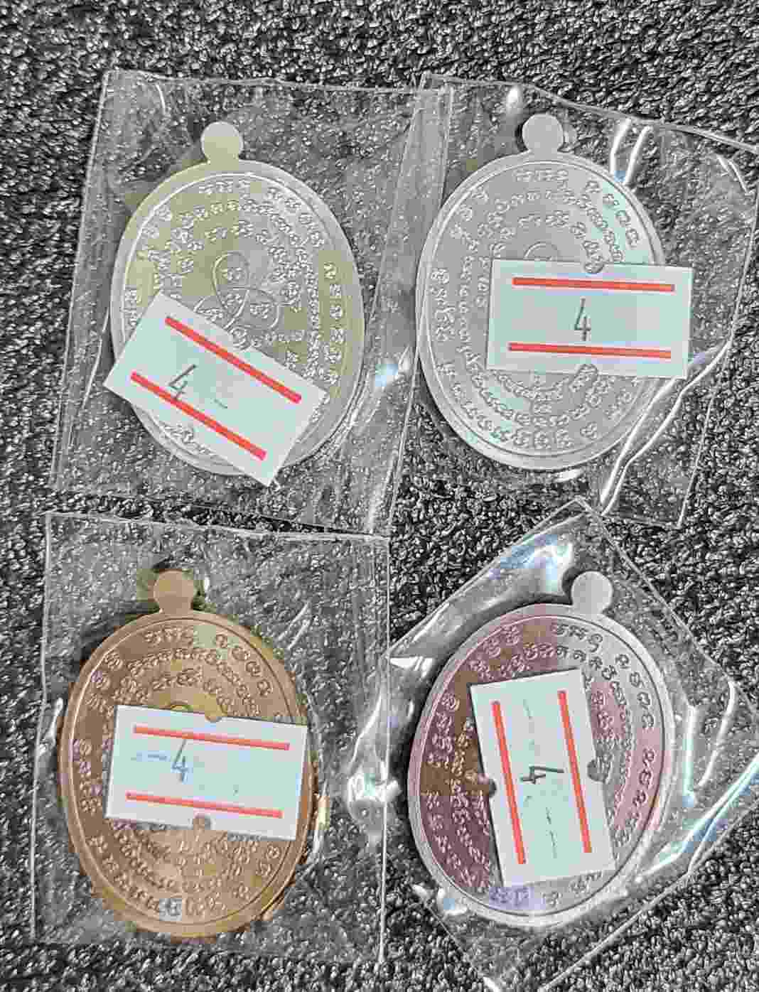 เคาะเดียวแดง เหรียญหลวงพ่อพัฒน์ รุ่นเจริญพร 2 โซนหน้ากาก สภาพเดิม ซิลเดิม รวม 4 เหรียญ |