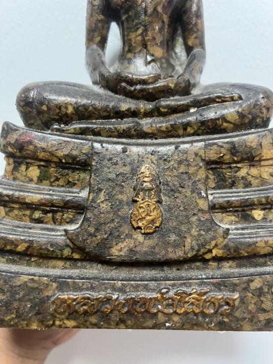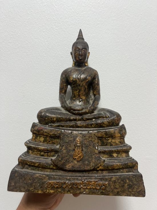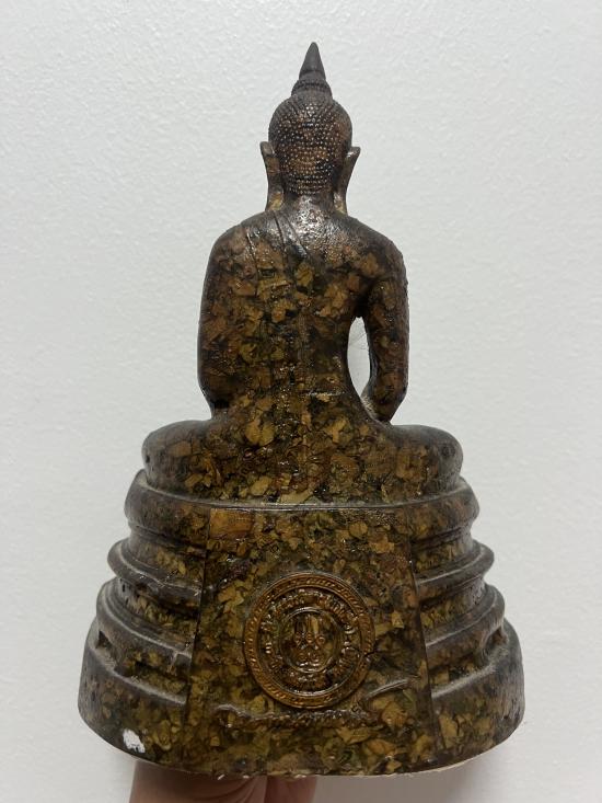 พระบูชาหลวงพ่อโสธร หน้าตัก 5 นิ้ว ฐาน 7 นิ้ว สูง 9 นิ้วครึ่ง เนื้อเรซิ่นผสมธนบัตรฉบับ ยี่สิบบาท เนื้อโซนสีเขียว ฐานผ้าทิพย์ตรากาญจนาภิเษก |