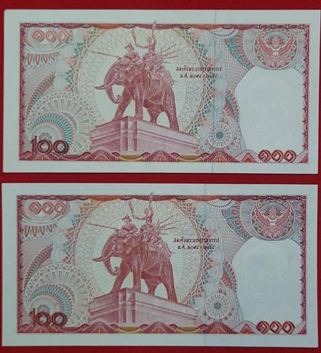 ธนบัตร 100บาท ร.9 แบบ 12 หลังช้างแดง 2ฉบับ เลข 999และ9999 สภาพ UNC ใหม่,สวย, ไม่ผ่านการใช้