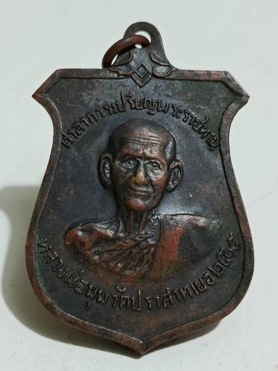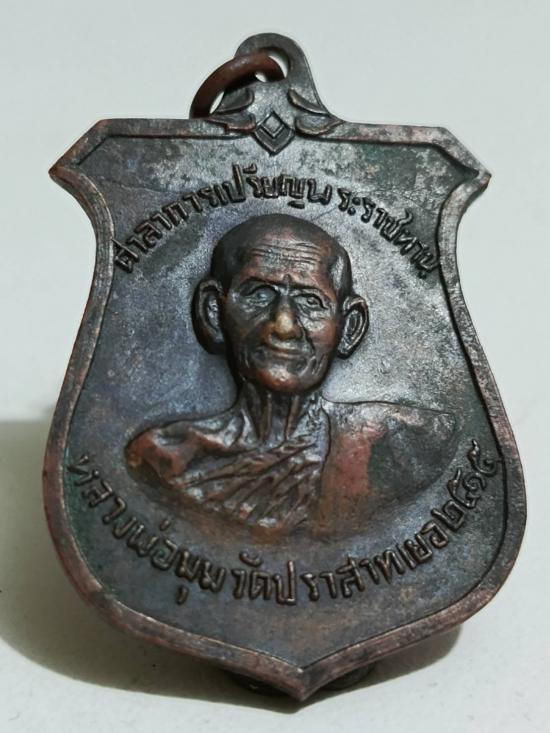 เหรียญหน้าบันศาลาการเปรียญฯ หลวงพ่อมุม วัดปราสาทเยอร์ (( บล๊อคนิยม 9 กา )) เนื้อทองแดงรมดำ ปี 2515 มีจารมือหลังเหรียญครับ |