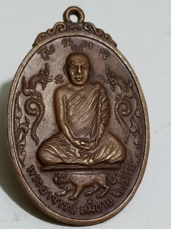 เหรียญนาคคู่หลังภูเขา หลวงพ่อสมชาย วัดเขาสุกิม จันทบุรี ปี 2521 เนื้อทองแดง พิมพ์ใหญ่ |