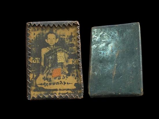Q501. รูปถ่ายเกจิอาจารย์ยุคเก่า ฝังจีวรแผ่นทองในกรอบกระจกโบราณ (เคาะเดียวแดง) |
