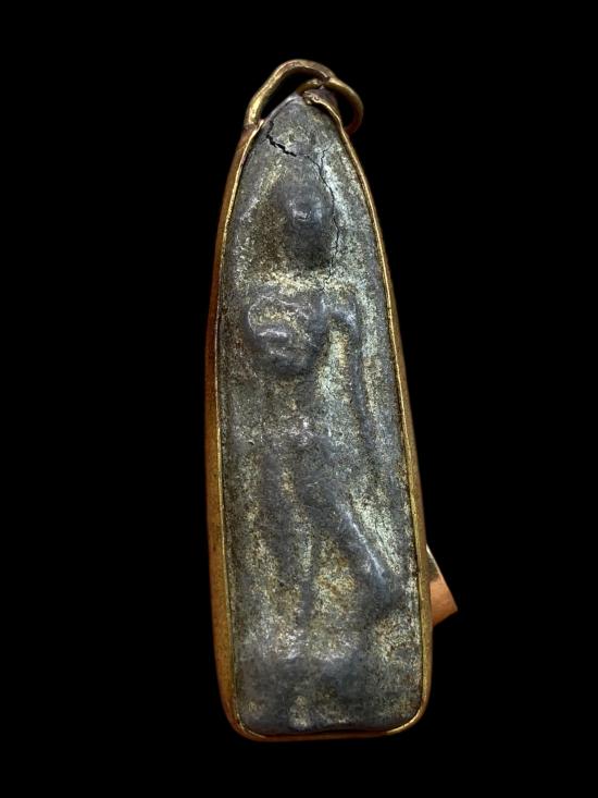 Q508. พระกรุเนื้อชิน พิมพ์ลีลา ปรอทขาวแตกลายงา เก่าถึงยุค (เคาะเดียวแดง) |
