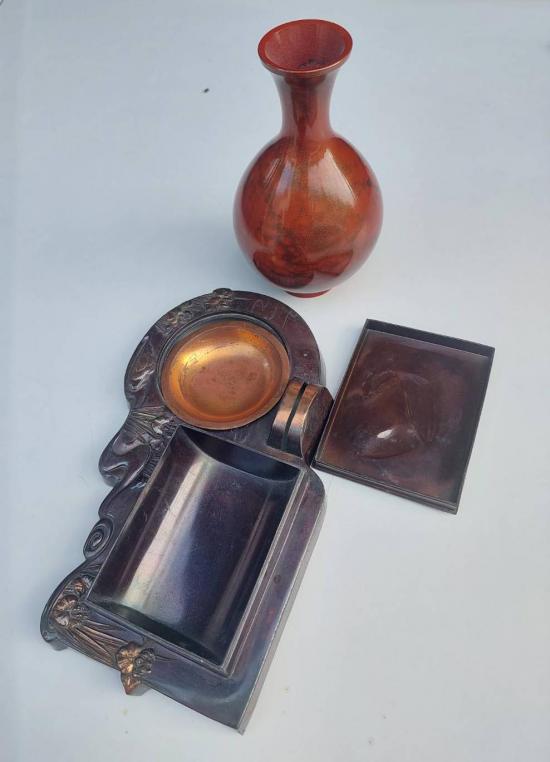 กล่องเก็บเครื่องประดับโบราณ เนื้อทองแดง งานฝีมือญี่ปุ่น