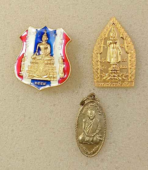 เข็มกลัดกะไหล่ทองลงยาลายธงชาติ หลวงพ่อวัดไร่ขิง ปี 59 +เหรียญพระร่วงเจ้าสัว วัดพระปฐมเจดีย์ ปี2545 จ.นครปฐม +เหรียญใบขี้เหล็กพิมพ์เล็ก หนุนดวง รุ่นพิเศษ หลวงปู่แผ้ว ปวโร |