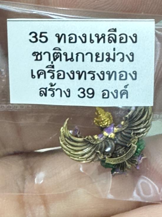 พญาครุฑ หลวงปู่จื่อ วัดเขาตาเงาะ ชัยภูมิ เนื้อทองเหลืองซาตินกายม่วงเครื่องทรงทอง หมายเลข 25 สร้างจำนวน 39 องค์ ซีนเดิมกล่องเดิม |