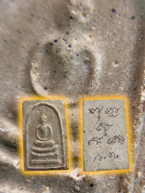 ***พระเนื้อผงละเอียดสีเทาอมเหลือง แทรกเม็ดแร่ดำธรรมชาติ