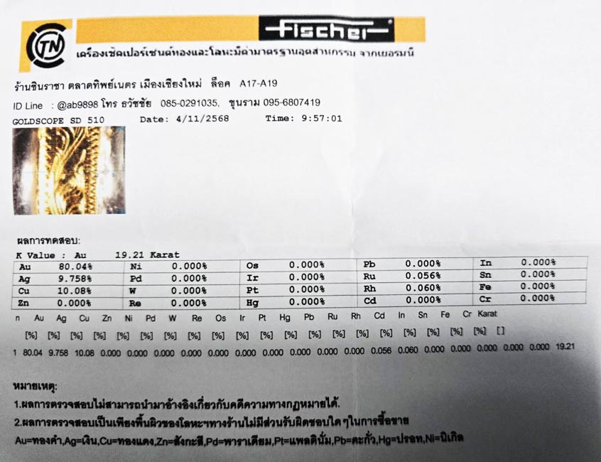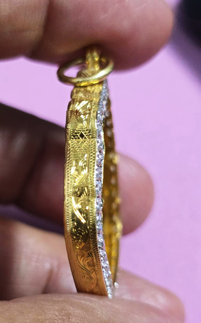 ชื่อพระเครื่อง กรอบทองคำมือสอง สภาพสวยสมบูรณ์ ฝั่งพลอยขาว เปอร์เซ็นต์ทอง 80.04 % น้ำหนัก 4.63 กรัม ทองดีเปอร์เซ็นต์สูงครับ