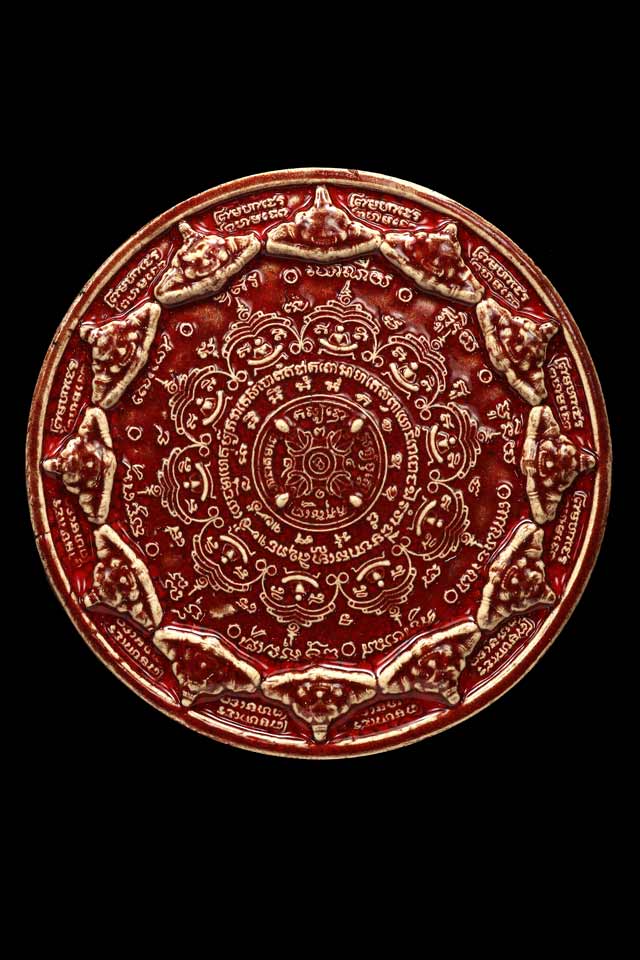 ***ปฐมอรหันต์สุวรรณภูมิ ปี 2547 พิมพ์ธรรมจักร เนื้อดินเผาเคลือบสีแดง ขนาด 5 ซม.พร้อมกล่องเดิม***