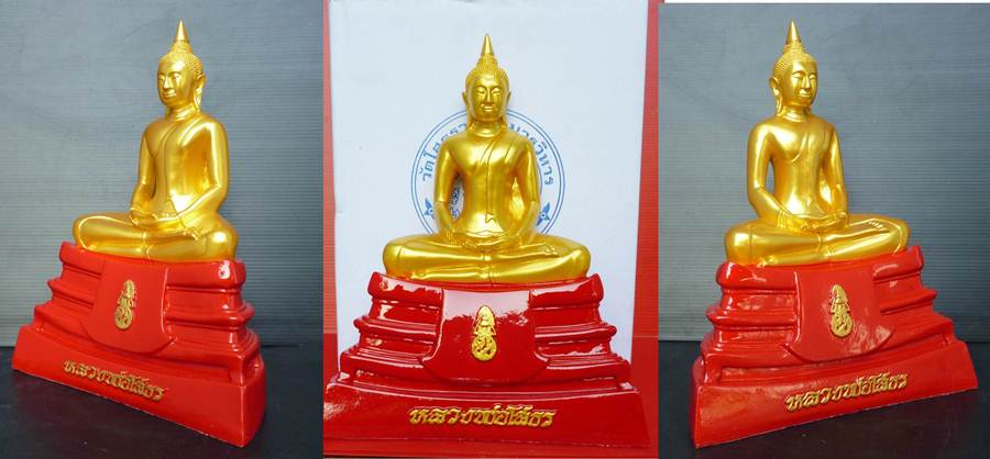 พระบูชา หลวงพ่อโสธร เนื้อเรซินองค์ทอง ฐานแดง ขนาด หน้าตัก 5 นิ้ว ความสูง 9.5 นิ้ว |