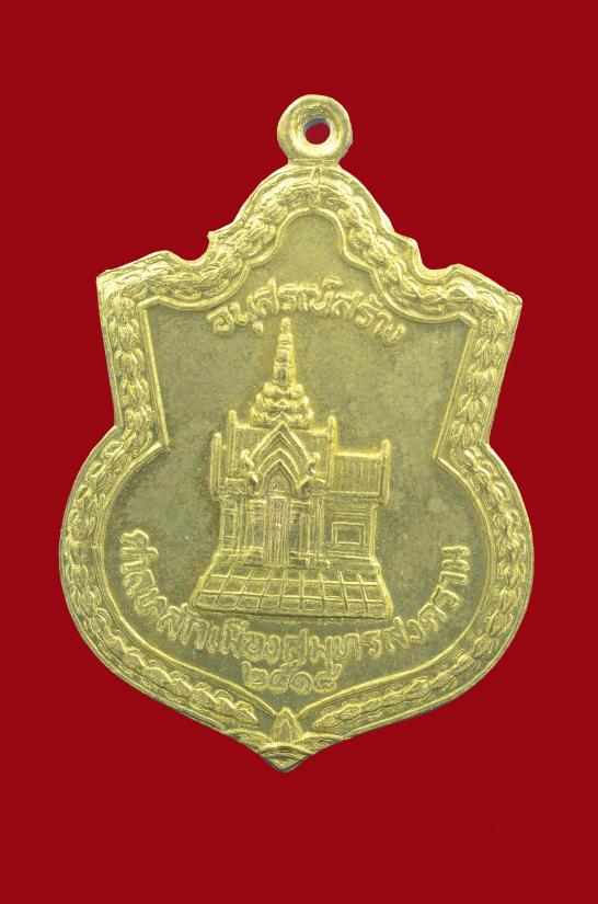 3-เหรียญ อนุสรณ์สร้างศาลหลักเมืองสมุทรสงคราม หลังหลวงพ่อบ้านแหลม ปี 18...กะไหล่ทอง |