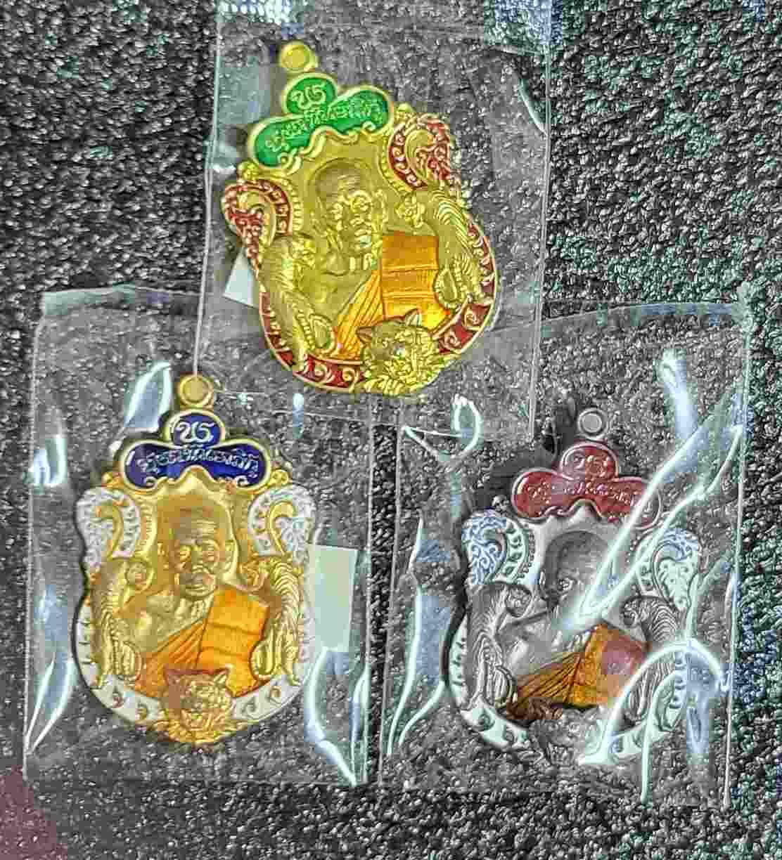 เคาะเดียวแดง เหรียญหลวงพ่อพัฒน์ รุ่นพยัคฆ์แสนล้าน โซนลงยาสามสี รวม 3 เหรียญ |