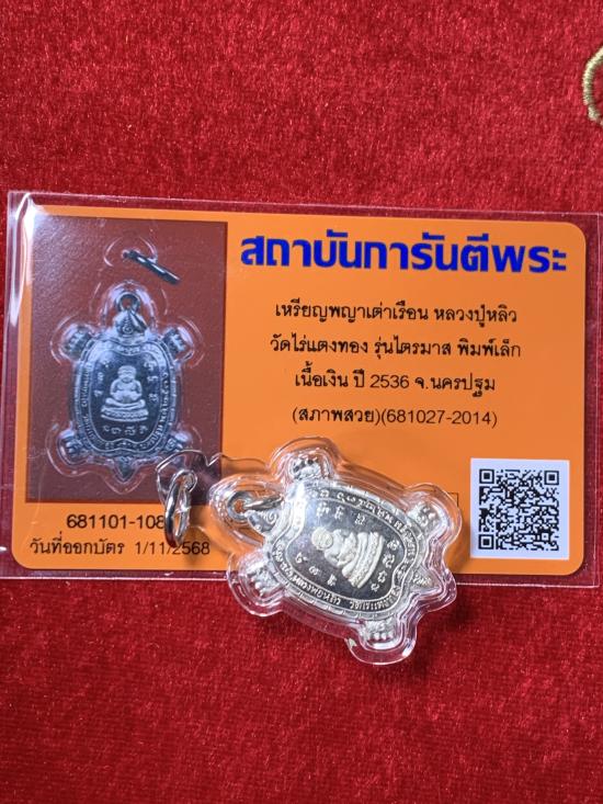 พระหลวงปู่ หลิว รุ่นไตรมาส ปี 36 เนื้อ เงิน บล็อกมือชิด สวยมาก มาพร้อม บัตร สภาพ สวย ครับ