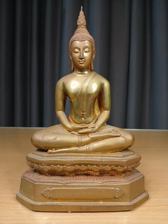 พระบูชาหลวงพ่อมหาสิทธิชัย วัดทองเพลง ธนบุรี ปี 30 หน้าตัก 5 นิ้วทองเหลืองขัดเงา สภาพสวย