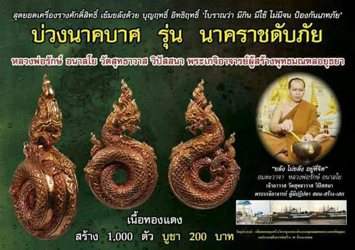 เคาะเดียวแดง 140 บาท ..... บ่วงนาคบาศ รุ่นนาคราชดับภัย เนื้อทองแดง หลวงพ่อรักษ์ วัดสุทธาวาสวิปัสสนา อยุธยา |