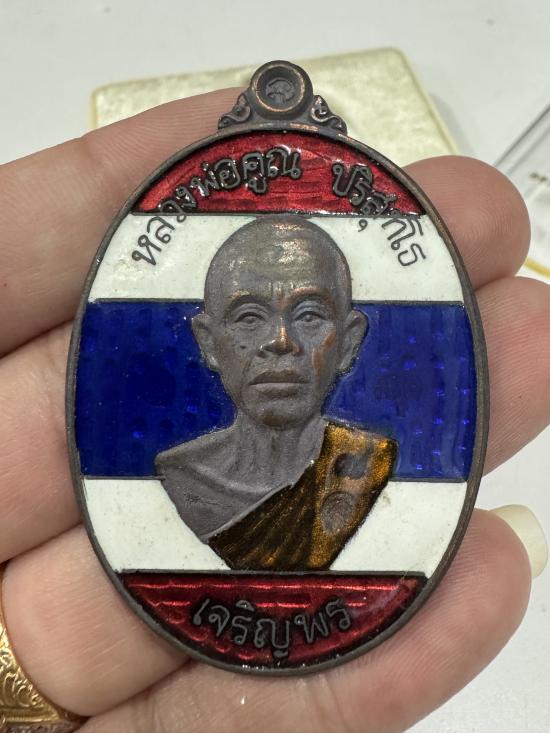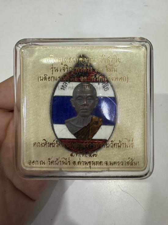 เหรียญเจริญพรล่าง91 พิมพ์จัมโบ้ ปี2557 เนื้อนวะโลหะ ลงยาธงชาติ no.7 มีกล่อง