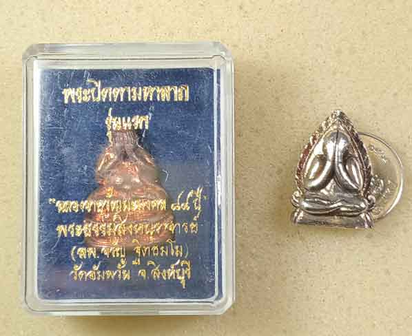พระปิดตาสังกัจจายน์ หลวงพ่อจรัญ วัดอัมพวัน สิงห์บุรี รุ่น7รอบ84ปี กล่องเดิม + พระปิดตา แก้วผลึก ปี 17 ไม่ทราบที่ |