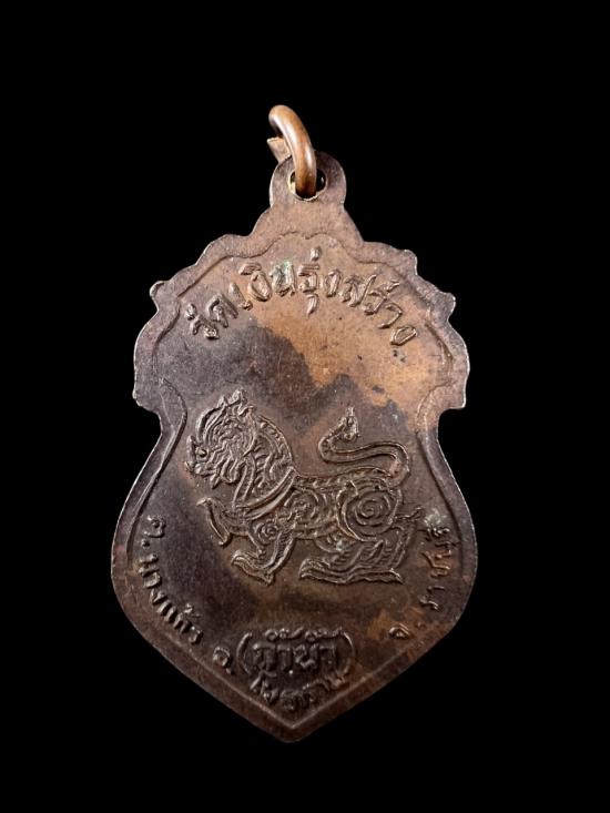 เหรียญเสมาหลังสิงห์ รุ่นแรก หลวงพ่อเงิน วัดเงินรุ่งสว่าง (วัดถ้ำน้ำ) อ.โพธาราม จ.ราชบุรี ปี 2530 เนื้อทองแดง |