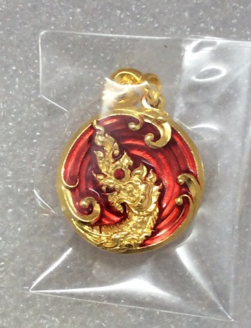 จี้นาคราช ขุมทรัยพ์นาคามงคล9 เนื้อสัมฤทธิ์ชุบทองลงยาแดง วัดไทย จ.หนองคาย กล่องเดิม |