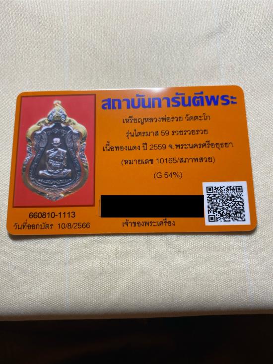 เหรียญหลวงพ่อรวย วัดตะโก รุ่นไตรมาส59 รวย รวย รวย เนื้อทองแดงปี2559 จ.พระนครศรีอยุธยา เลข10165 สภาพสวย เลี่ยมทองฝังเพชรcz พร้อมบัตรรับรองฯ โอนเงินแล้วแจ้งรายละเอียดการโอนทาง Mailbox ของเวปจี ได้รับแจ้งว่าโอนเงินแล้วจะส่งพระภายใน 3 วันทำการ