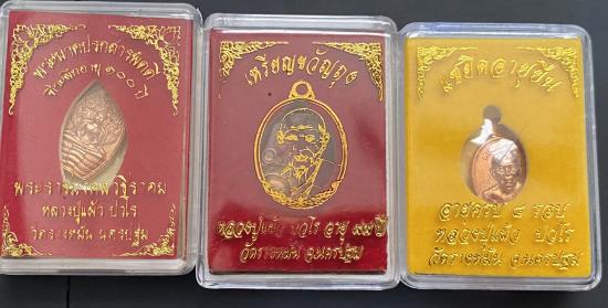 หลวงปู่แผ้ว ปวโร วัดรางหมัน รุ่น ปรกสารพัดดี , รุ่นขวัญถุง , รุ่นเเซยิดอายุยืน (ทองเเดง 3 เหรียญ))