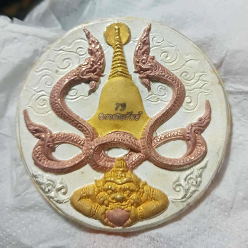 199.......เหรียญบาตรน้ำมนต์ รุ่นราชาทรัพย์ เนื้อ 3 กษัตริย์ (ทอง เงิน นาก ) 5.5 ซม. สวยเดิมๆ กล่องเดิม |