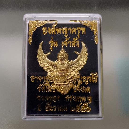 พญาครุฑรุ่นเจ้าสัว ปี56 พระอาจารย์วราห์วัดโพธิ์ทอง พิมพ์ใหญ่เนื้อกะไหล่ทอง โคตรวอสายฟ้ากล่องเดิมครบ |