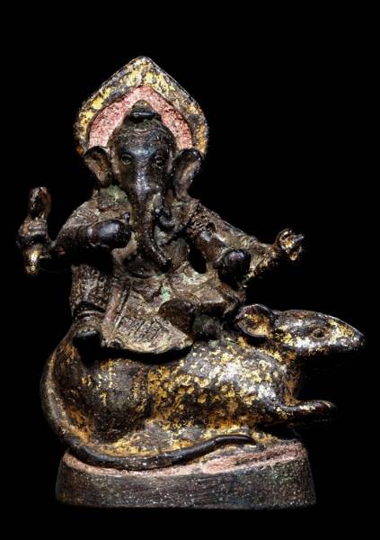 พระพิฆเนศ ประทับหนู เนื้อโลหะ กว้าง2นิ้วสูง3นิ้ว |
