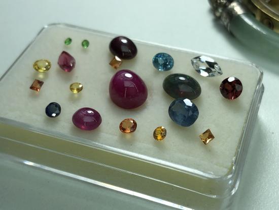 อัญมณีแกะจากสินหลุดจำนำ เพทาย สปิเนล บุษราคัม ไพลิน โทแพส แบล็คโอปอล สปิเนล โกเมนแดง โกเมนเขียว ไคยาไนซ์ รวม 13.5 กะรัต |