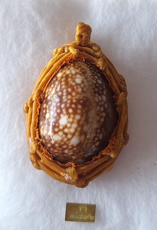 เบี้ยแก้ หุ้มจีวร ถักเชือก หลวงปู่ศิลา วัดโพธิ์ศรีสะอาด มีแผ่นเลขกำกับ ฝังตะกรุดทองเหลือง พร้อมใบคาถา ปี2567 |