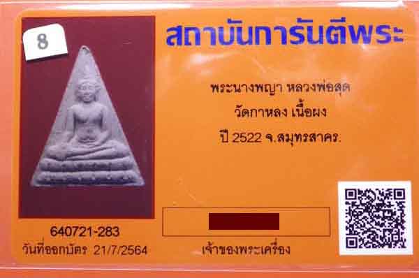 พระนางพญา หลวงพ่อสุด วัดกาหลง จ.สมุทรสาคร ปี 2522 พร้อมบัตรการันตี |
