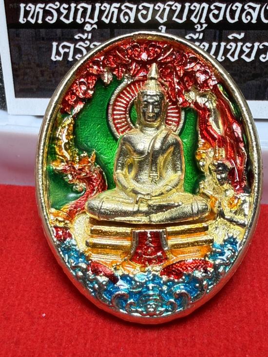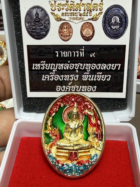 ((วัดสร้าง))เหรียญหลวงพ่อโสธรรุ่นประวัติศาสตร์ครบรอบ 255 ปี วาระพิเศษ เหรียญหล่อชุบทองลงยาเครื่องทรง พื้นเขียวองค์ชุบทอง โค้ตเลข 16 พร้อมกล่องเดิม |