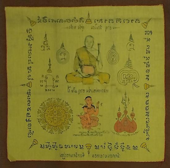 ผ้ายันต์พรมน้ำมนต์ หลวงพ่อแช่ม วัดดอนยายหอม อายุ 86 ปี พ.ศ.2535 |