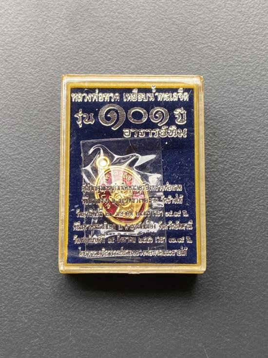 เม็ดแตงหลวงปู่ทวดหลังอาจารย์ทิม รุ่น101ปี เนื้อทองแดงนอกชุบทองลงยาแดง |