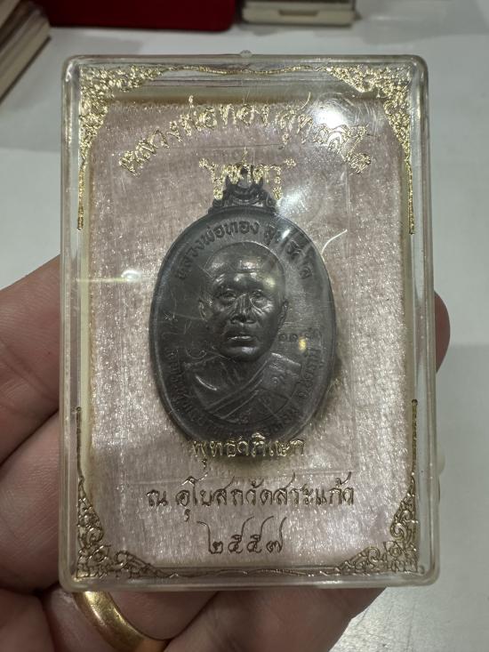 หลวงพ่อทอง วัดบ้านไร่ เหรียญบูชาครู รุ่นแรก ปี2557 เนื้อชนวน โค้ด๙ no.1149 มีกล่อง