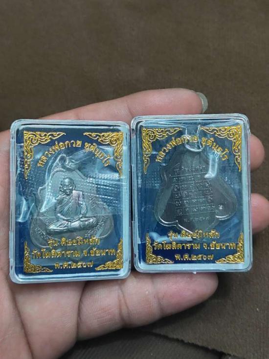 รายละเอียด เหรียญหลวงพ่อกวย หลังยันต์ เดิมจากวัด กล่องเดิมๆ รุ่นศิษย์มีหลัก ปี 2567 สวยเดิมครับผิวสวยๆรุ้งๆ เหรียญจริงสวยกว่าในรูปแน่นอนคับรับพระ 2 องค์คับ