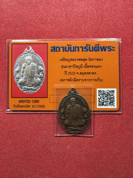 เหรียญหลวงพ่อสุดวัดกาหลงพร้อมบัตรรับรอง
