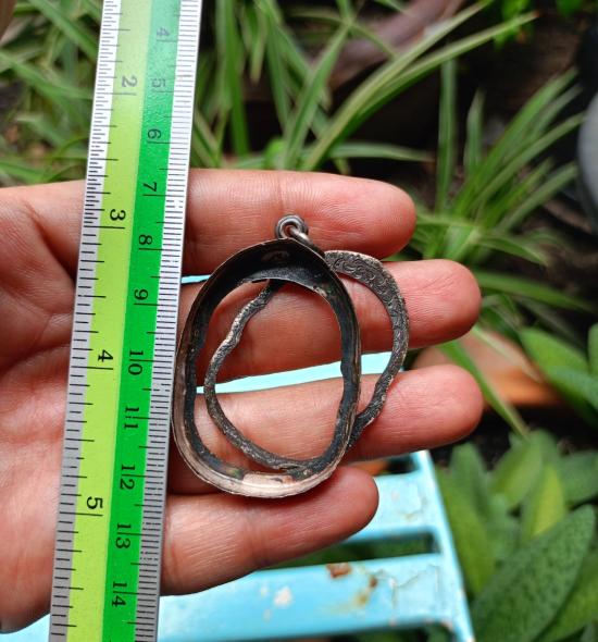 กรอบเงินเปอร์เซ็นสูง งานรุ่นเก่า ใส่เหรียญเสือเผ่น หลวงพ่อสุด ไม่เคยเข้าเลี่ยมใช้งานครับ |