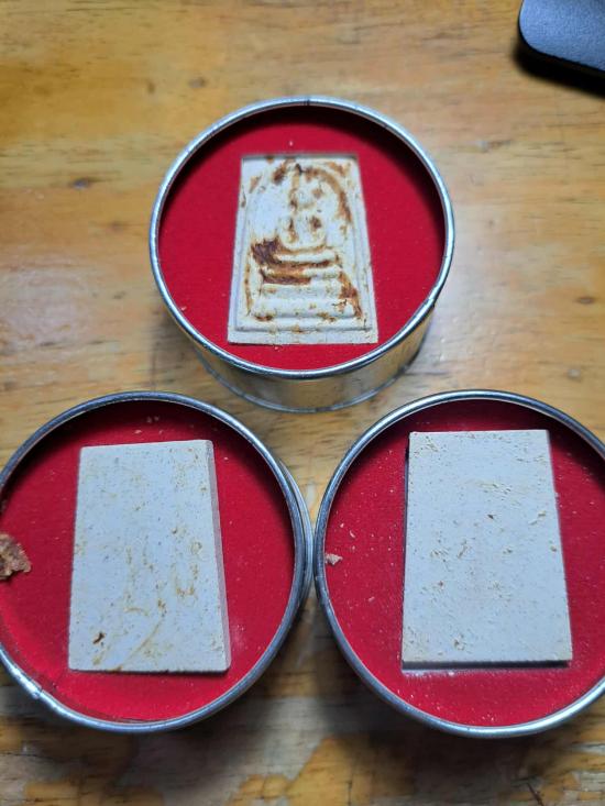 พระสมเด็จ 100 ปี ที่ระลึกสมเด็จสังฆราช วัดบวรนิเวศวิหาร ทรงเจริญพระชนมายุครบ 100 ปี บรรจุมวลสารส่วนพระองค์ ประทานจากสมเด็จพระสังฆราช ฯ คือ พระเกศา พระทนต์ และผงพระเครื่องสำคัญ เคาะเดียวแดง 3 องค์ |