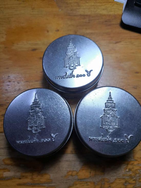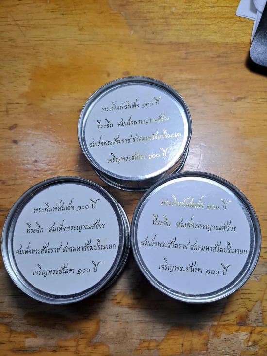 พระสมเด็จ 100 ปี ที่ระลึกสมเด็จสังฆราช วัดบวรนิเวศวิหาร ทรงเจริญพระชนมายุครบ 100 ปี บรรจุมวลสารส่วนพระองค์ ประทานจากสมเด็จพระสังฆราช ฯ คือ พระเกศา พระทนต์ และผงพระเครื่องสำคัญๆ เช่น พระศาสดา ปี 16 ผงจิตรลดา และผงพระเจดีย์ วัดบวรนิเวศ ฯ พระสมเด็จรุ่นนี้เด่นด้วยมวล พุทธคุณสูง เคาะเดียวแดง 3 องค์ |