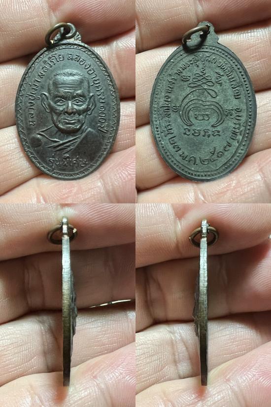**แดง100***เหรียญรุ่นพิเศษ หลวงปู่เม้า วัดสี่เหลี่ยม บุรีรัมย์ เนื้อทองแดงรมดำ ปี 2517 ผิวหิ้งครับ |