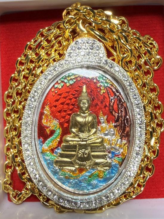 ((เงินหน้าทองคำ))(วัดสร้าง)เหรียญหลวงพ่อโสธรรุ่นประวัติศาสตร์ครบรอบ 255 ปี วาระพิเศษ เนื้อเงินลงยามาสเตอร์พีชแดงหน้ากากทองคำเลี่ยมกรอบทองอิตาลีพร้อมสร้อยทองอิตาลี โค้ตเลข 38 พร้อมกล่องเดิม |