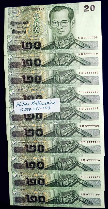 ธนบัตร 20 บาทแบบ 15 ชุด 9หน้า-9หลัง เลขสวย |